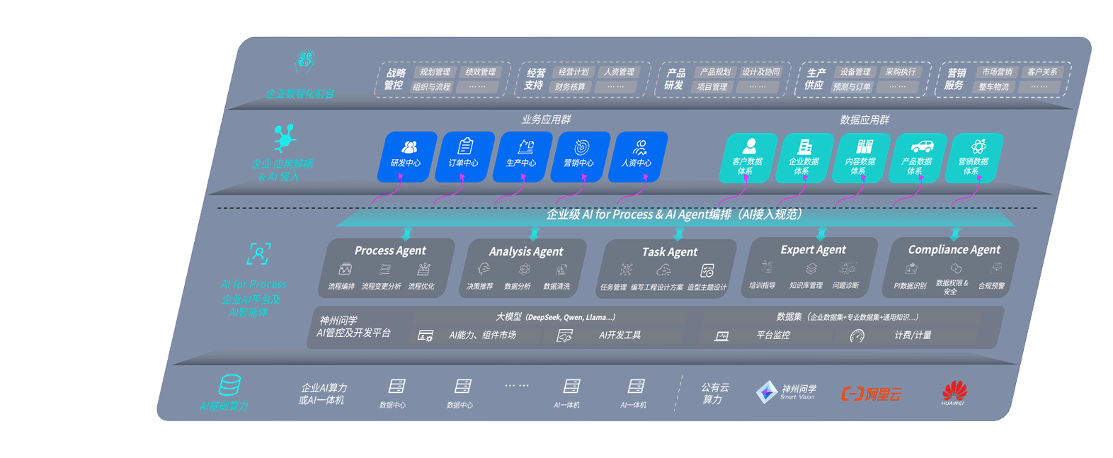 森林舞会问学智车解决方案是一套基于AI技术的汽车行业智能化系统,,覆盖从底层算力到顶层AI应用的全栈方案。。方案由算力层、、、模型层和应用层组成:算力层,,,方案支持多种一体机配置,,,,具备云端灵活部署、、多云适配以及动态优化计算资源的能力;模型层,,森林舞会问学平台版提供了企业级AI应用一站式构建与管理平台,,支持基于后训练强化技术的汽车企业专属模型的训练、、、评测和运营;应用层,,森林舞会问学DeepSeek版提供包括超级员工、、、、智能招采、、智能营销、、、、智能客服、、、AI for BI等一系列解决方案,,可助力汽车行业实现数字化转型,,,,让管理更智能、、、、响应更敏捷。。